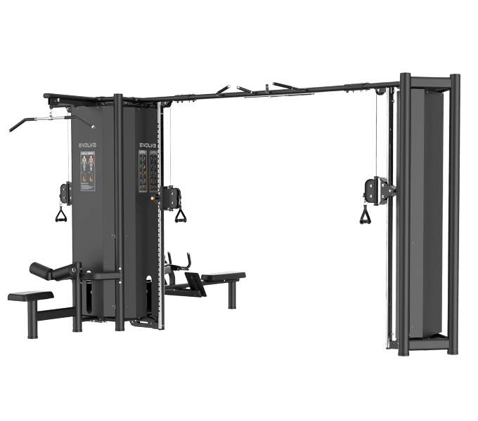 Odkrijte Evolve Ultra Series Selectorized 5 Stack Multigym, popolno mešanico varnosti, sloga in funkcionalnosti za lastnike telovadnic in fitnes navdušence. Odlikuje ga popolnoma pokrit pokrov uteži za večjo varnost in eleganten videz, njegov vzdržljiv, elektrostatično prašno prevlečen okvir v biserno črni mat barvi pa je eleganten in narejen tako, da traja. Opremljen z gumijastimi podlogami za zaščito vaših tal in optimalnimi ročaji za udobje in varnost je ta 1025 kg multigym idealna izbira za vsak fitnes.