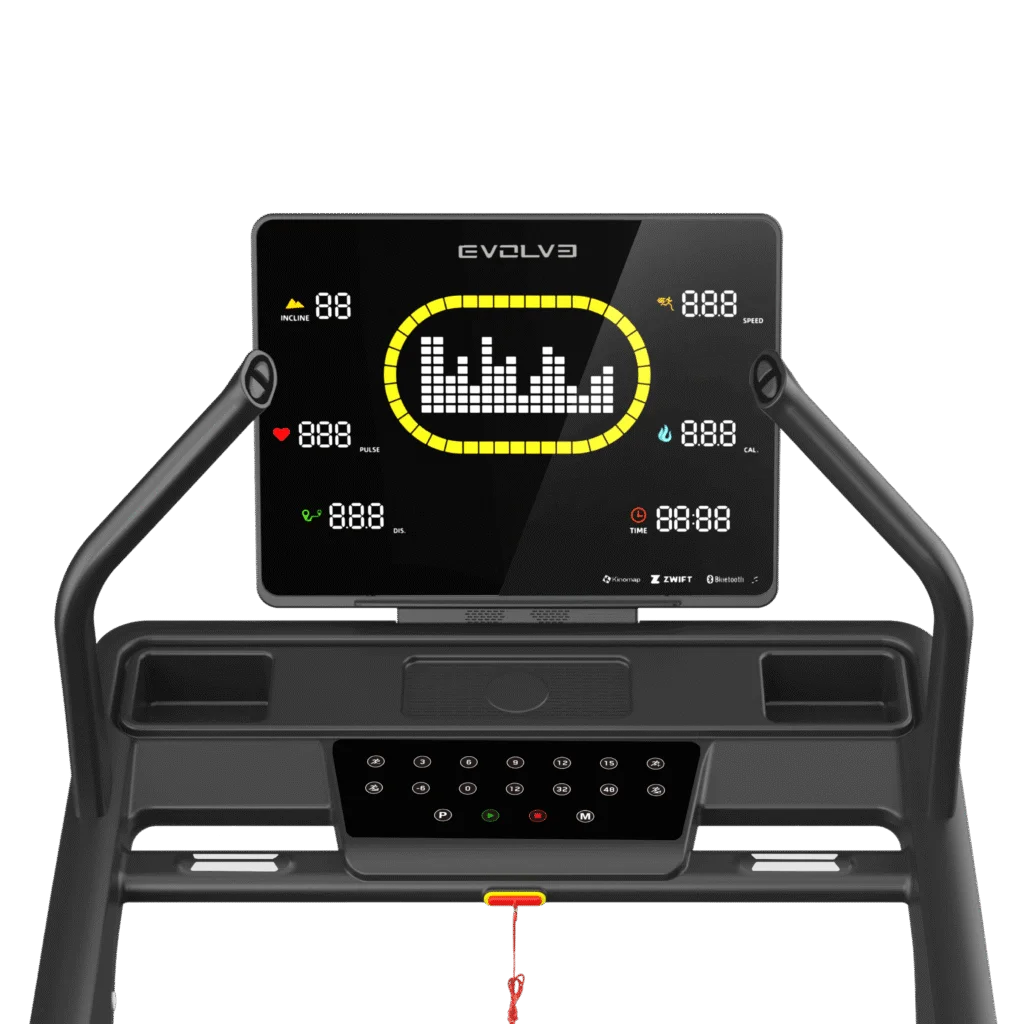 LED‑konzola v realnem času prikazuje vse ključne podatke o vadbi, vključno s časom, hitrostjo, razdaljo, naklonom, porabljenimi kalorijami in srčnim utripom prek ročnih senzorjev. Integrirani zvočniki, podpora za Bluetooth glasbo ter brezžično polnjenje telefona poskrbijo za večje udobje in prijetnejšo vadbeno izkušnjo.